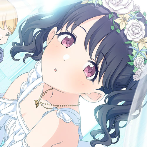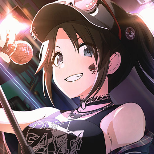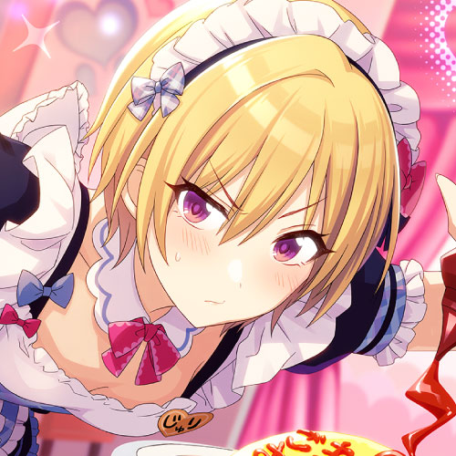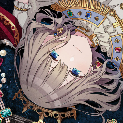 まず目に飛び込むのが瞳の透き通るブルー。まさに吸い込まれそうな印象でそこから宝石の碧・衣装の紅・王冠の金など、色使いが巧みな一枚です。塗りのにじみ感も荘厳な・神々しい印象を生み出しているのかなと感じました。「シャイニーカラーズ」プロデューサー