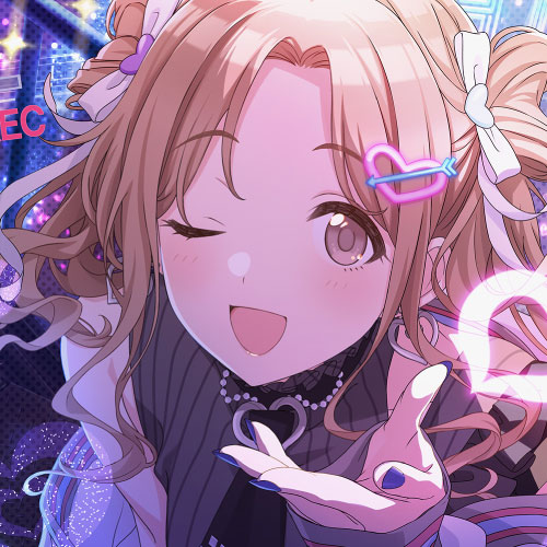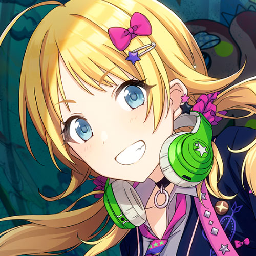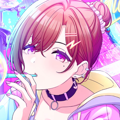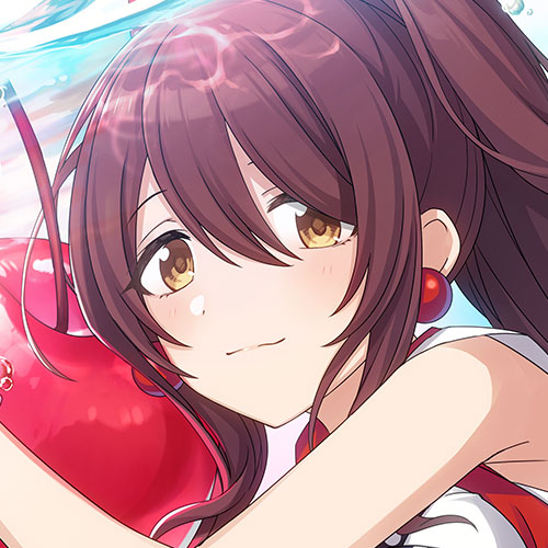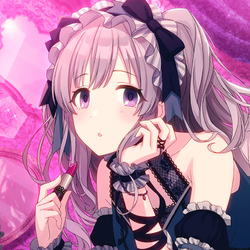 印象的な水彩風のタッチと、ピンクやブルーといった影色での遊びが印象的です。霧子が持つリップが最も彩度が高く、霧子の顔回りの印象が強まるのも工夫されているように思いました。「シャイニーカラーズ」プロデューサー