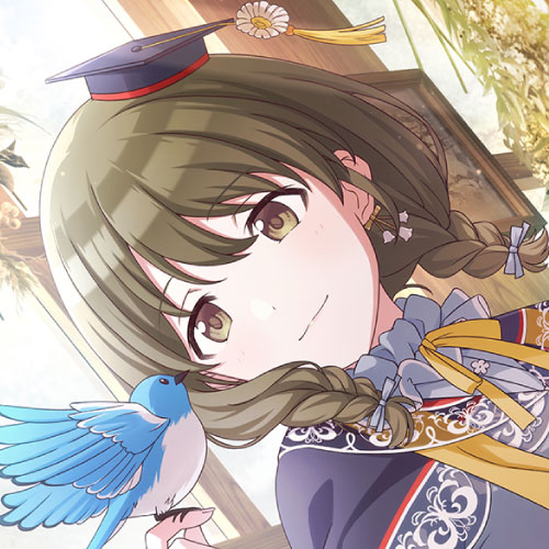 木漏れ日を浴びて、キャラクターの笑顔がより魅力的に感じられます。まわりの草木に埋もれない衣装の配色と、緑に包まれた七草にちかを引き立てるガーデンの魅せ方が素晴らしいです!セルシス