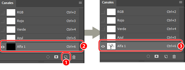 - Selecciona el canal alfa.