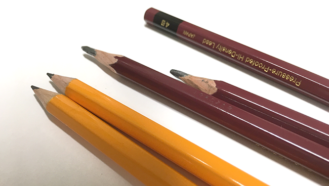 Para bocetos, es mejor usar lápices de mina blanda. Una mina de grafito con una dureza de entre 4B y 6B sería lo ideal. También podrías dibujar con un portaminas normal y corriente, pero las minas suelen ser extremadamente frágiles y la punta puede terminar rasgando el papel.