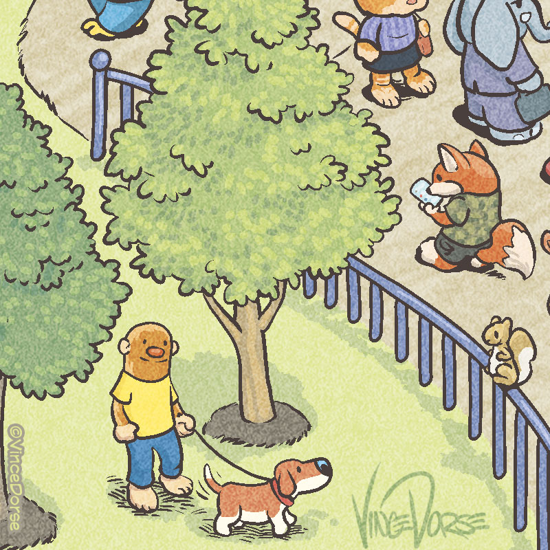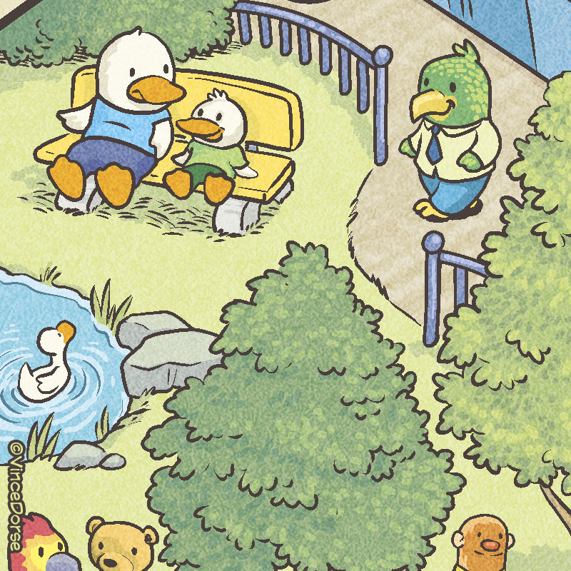 Patos alimentando patos, un osito de peluche en un pícnic… Un buen día en el parque. Ah, y ese individuo de abajo a la derecha me resulta familiar…