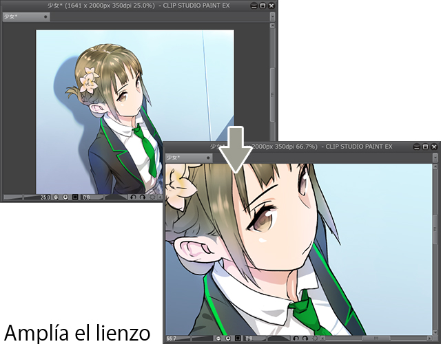 Cada vez que pulses esta combinación de teclas ampliarás más el lienzo. En la imagen de ejemplo hemos pulsado tres veces [Ctrl] y [+].