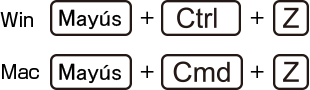 El “+” que hay entre algunas de las combinaciones de teclas indica que se deben usar ambos botones en conjunto. Los atajos son los mismos en Photoshop, CLIP STUDIO PAINT y Paint Tool SAI, a menos que se indique lo contrario.
