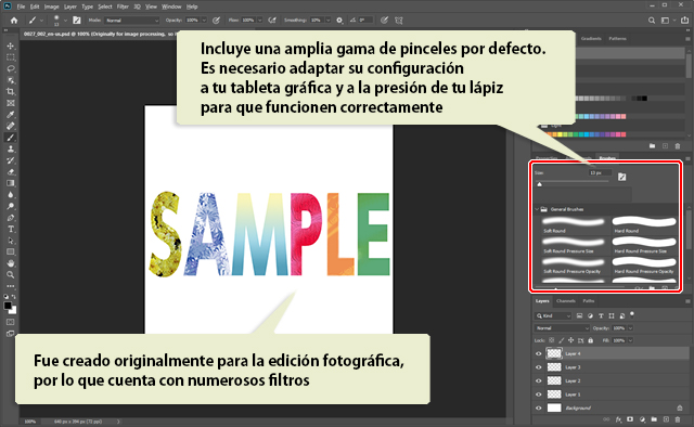 Se trata de un programa profesional de diseño gráfico muy conocido en la industria del diseño y de la edición fotográfica. Cuenta con tantas funciones que hasta se puede usar como programa para dibujar. Para aprovechar Photoshop al máximo es necesario configurar algunos parámetros, así que es más recomendable para artistas con algo de experiencia.