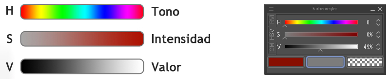 ● Aquí puedes ver cómo han ido cambiando el valor, la intensidad y el tono en el círculo cromático de CLIP STUDIO PAINT: