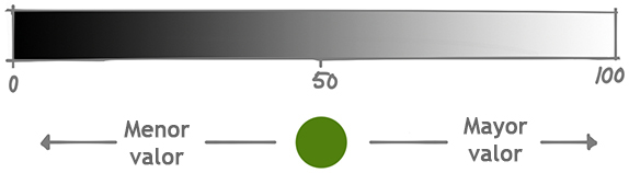 ● Empecemos con el tono medio: un verde con un valor del 50%.
