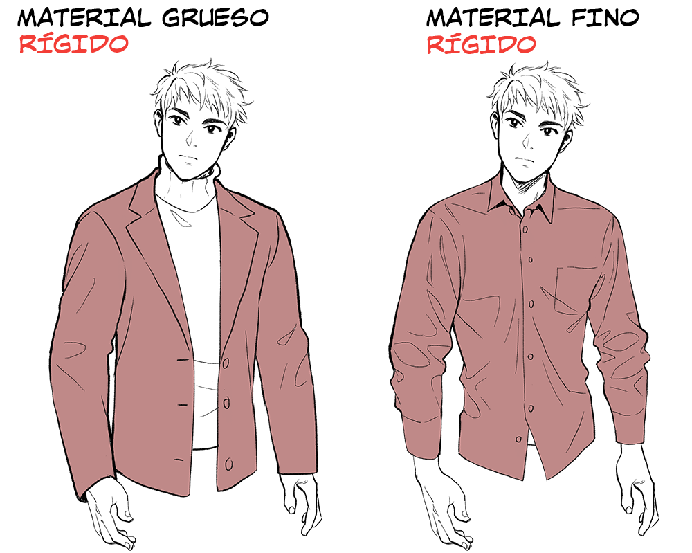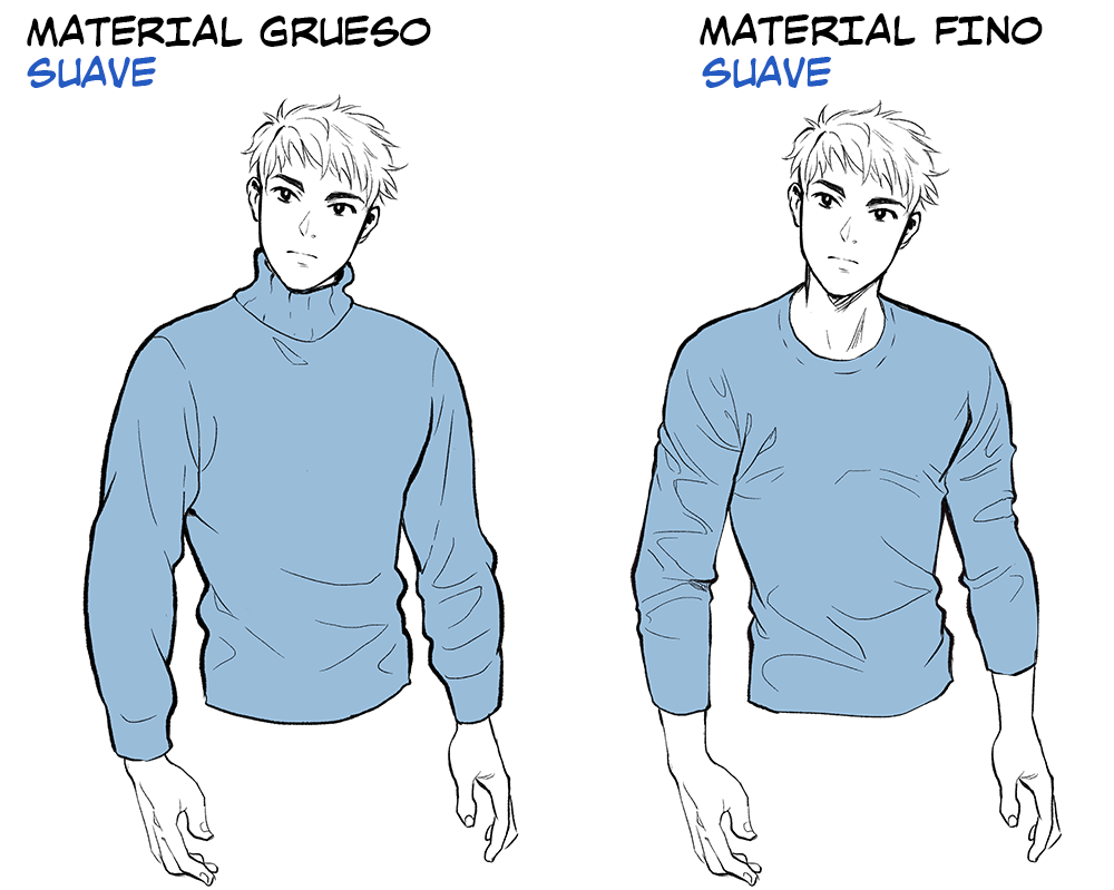 La cantidad de pliegues también depende del peso del tejido y del tipo de material, por ello, al dibujar la tela, considera sus características primero (grosor, rigidez y peso).