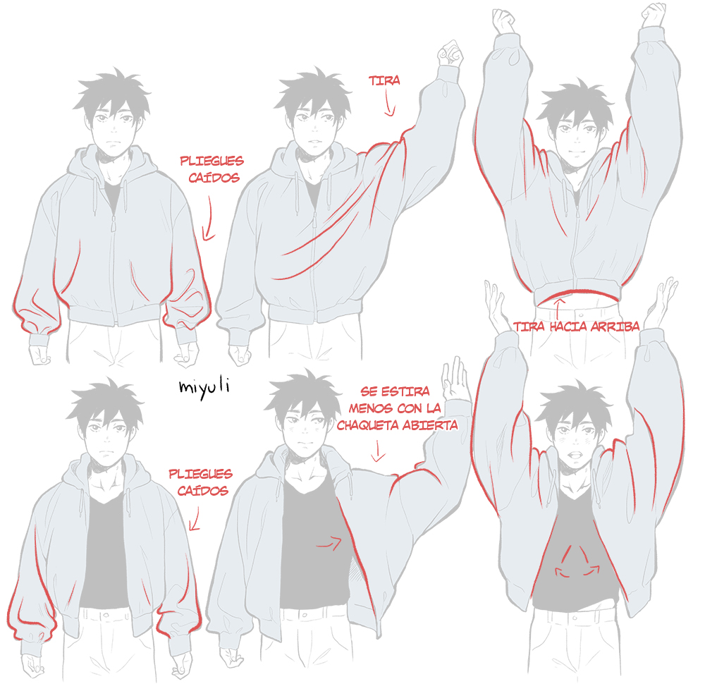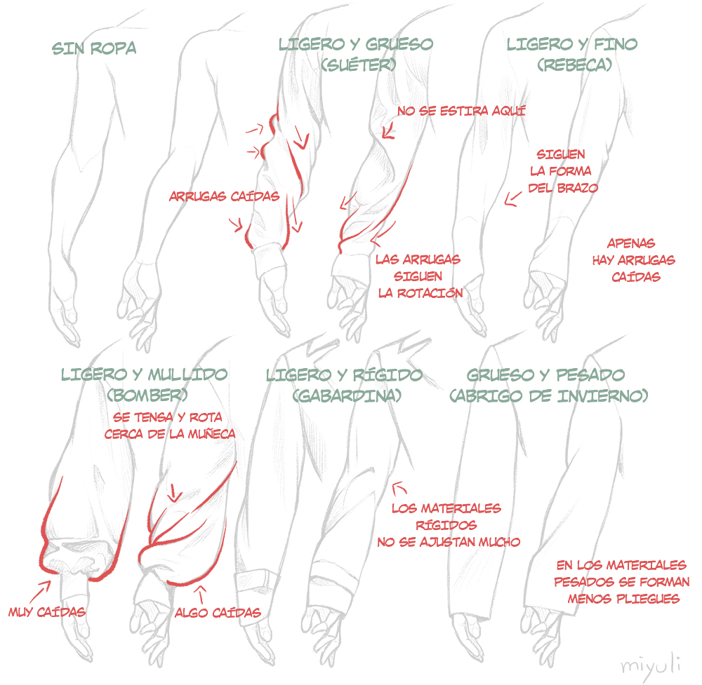 Para dibujar ropa correctamente hay que tener en cuenta el tejido y cómo se adapta al cuerpo. Miyuli te descubre los secretos de prendas, arrugas y pliegues.