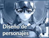 Una vez hayamos escogido nuestro estilo, puede que aún tengamos dudas sobre nuestros personajes, ya sea sobre su diseño, colores o su construcción. Si hay un gran número de personajes diferentes, nuestra historia es muy extensa y por lo tanto tiene gran cantidad de ilustraciones o nuestros personajes son complejos con gran cantidad de elementos, lo más recomendable es crear previamente una especie de guía con los personajes, dibujándolos sobre un fondo blanco y con todos los elementos, incluso pudiendo hacer diferentes pruebas de color en esta fase previa. Podemos hacer algo simple con sólo una vista de los personajes, normalmente la frontal, o hacer lo que se conoce como turnaround. Un turnaround es una serie de vistas del personaje, normalmente entre 4 y 8, que hace que podamos ver todos los elementos que lo conforman desde diferentes ángulos, como se muestra a continuación. Lo mejor es que el personaje esté en una postura simple y relajada, ya queremos mostrar es su diseño y no una acción concreta.