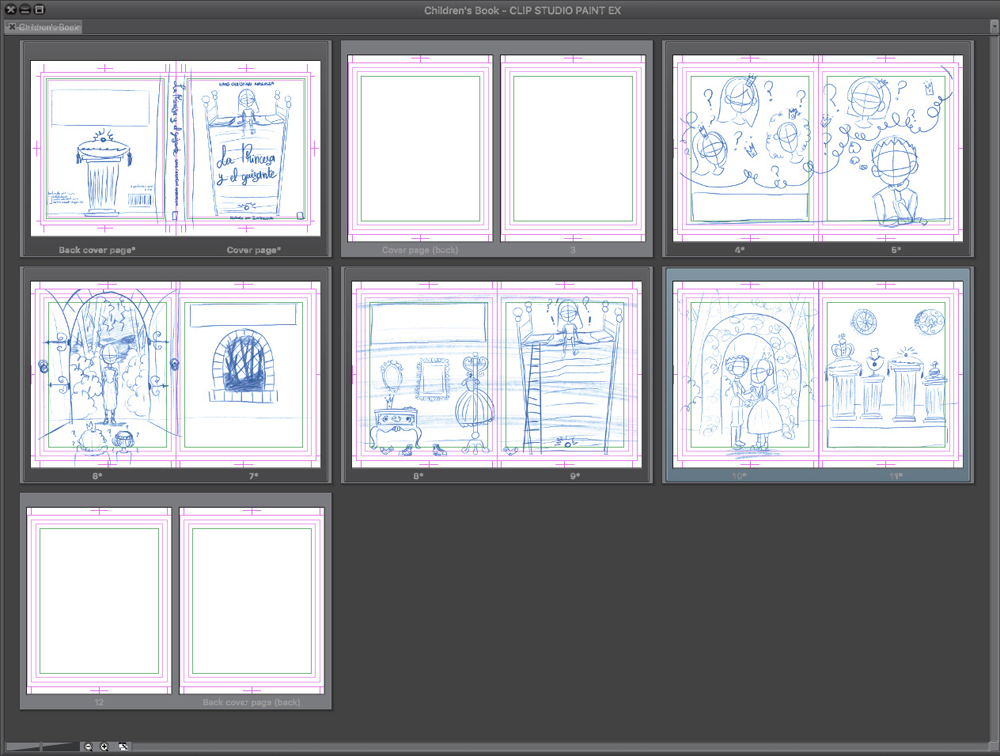 Una vez hecho esto, tendremos todas las páginas listas para poder ilustrar sin ningún problema. Nos aparecerá todo el conjunto de páginas en miniatura como se muestra en la siguiente imagen y para abrir la página en la que queramos trabajar tan solo debemos hacer doble clic sobre ella.