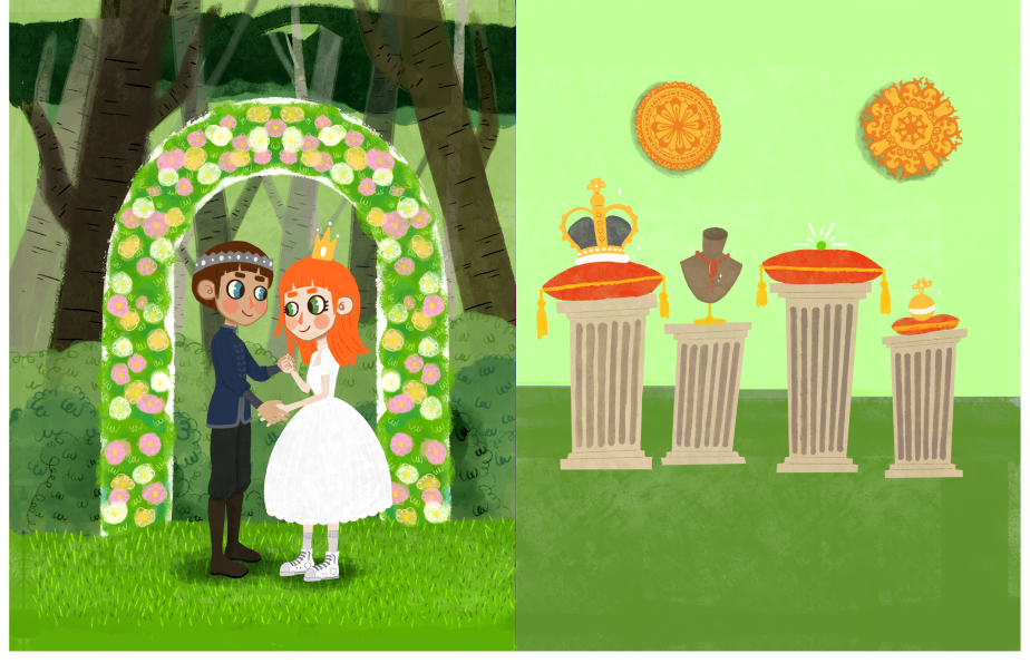 - Y por último, ilustraremos la boda de ambos príncipes y como detalle final, el guisante teniendo un lugar especial entre los tesoros reales.