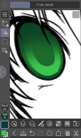 5. Hacemos lo mismo con la mitad inferior del iris y pintamos sobre el line art con un color ligeramente más oscuro.