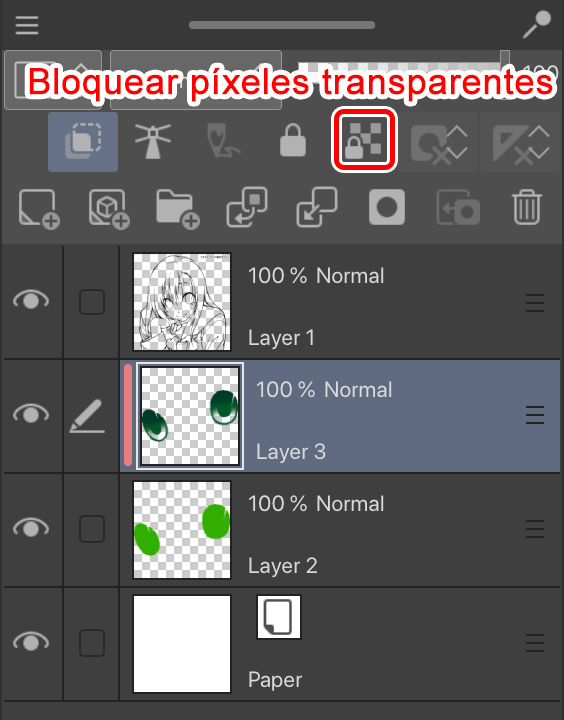 Esto bloqueará los píxeles transparentes para que solo sea posible modificar los opacos.