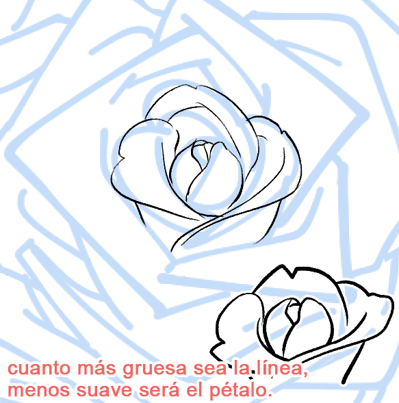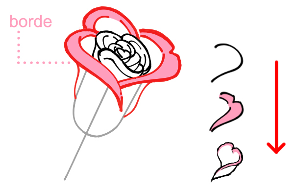 Ahora que ya conoces las partes de la rosa, podemos dibujar los pétalos.