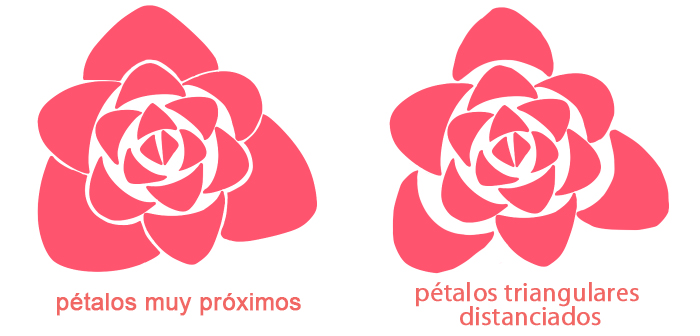 Equilibrar bien el grosor de las líneas es muy importante para dar suavidad a los pétalos. Los pétalos de la parte A deben ser más finos para que parezcan más delicados.