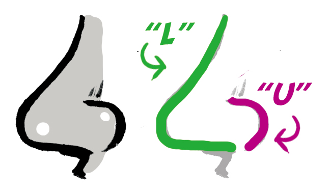 Si está de perfil, traza una “L” y una “U”.