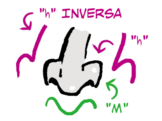 Puedes dibujar una nariz de frente con una “M” y una “h”.