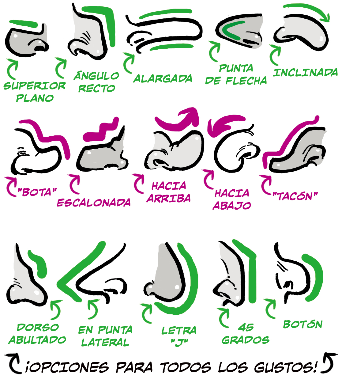 La nariz es la parte más versátil del rostro, lo que nos deja un enorme abanico de posibilidades.
