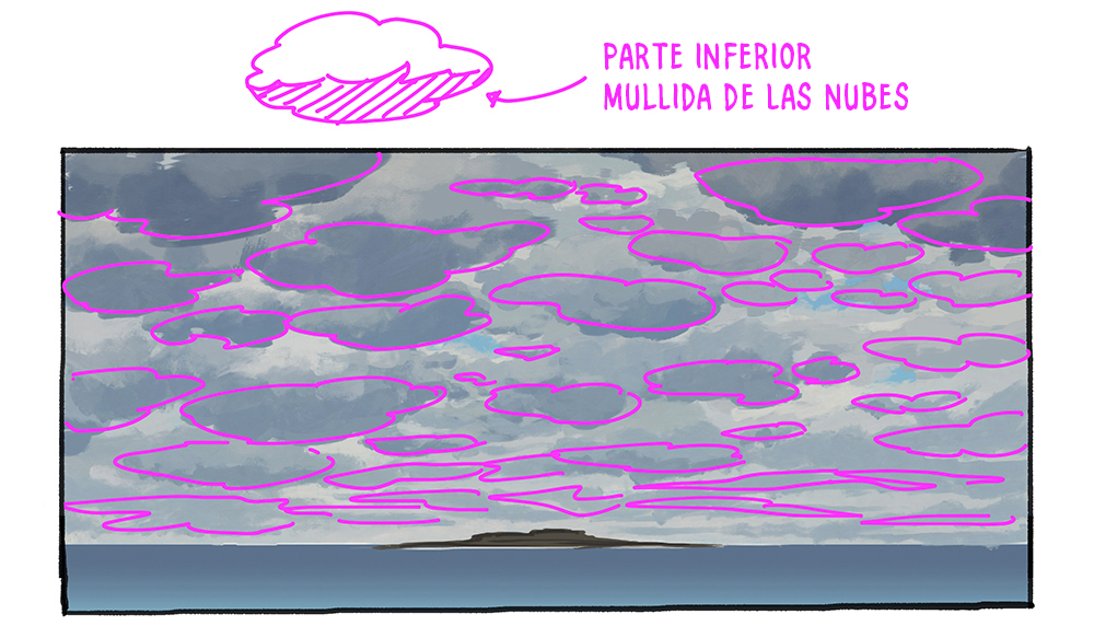 Pinto las nubes bajas para darles más volumen.
