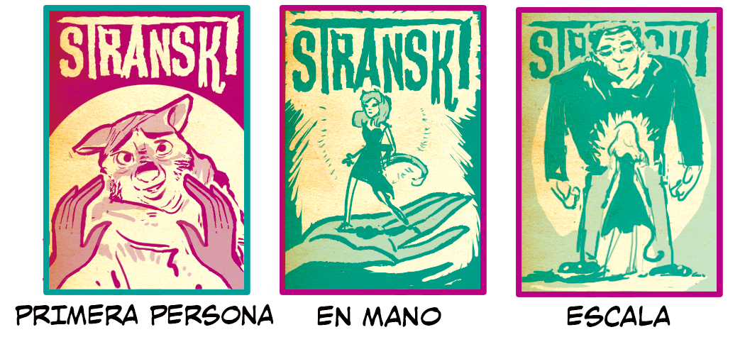 Escala representa una idea similar a la de En mano. También juega con el contraste en el tamaño, aunque aquí se ven por completo ambos personajes y la diferencia en tamaño transmite una emoción más fuerte y directa que En mano. Además, indica la existencia de un obstáculo capaz de frenar a nuestra protagonista y que está por encima de ella.