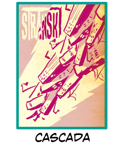 Cascada tiene bastante en común con División central, como la línea central que atraviesa ambas composiciones y cómo las líneas del fondo resaltan el elemento central. Como hemos estado viendo hasta ahora, el título está perfectamente integrado en la portada.