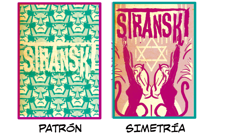 Patrón y Simetría son alternativas curiosas a las típicas composiciones de las cubiertas. Los patrones continuos pueden abrumar en ciertos casos, por lo que el título en Patrón se queda en blanco. Esto no solo rebaja el patrón, sino que hace el título más legible. Simetría es más tradicional e incluye figuras como la mayoría del resto de ejemplos. Conserva el toque decorativo de Patrón y ofrece algo visualmente distinto a lo habitual.