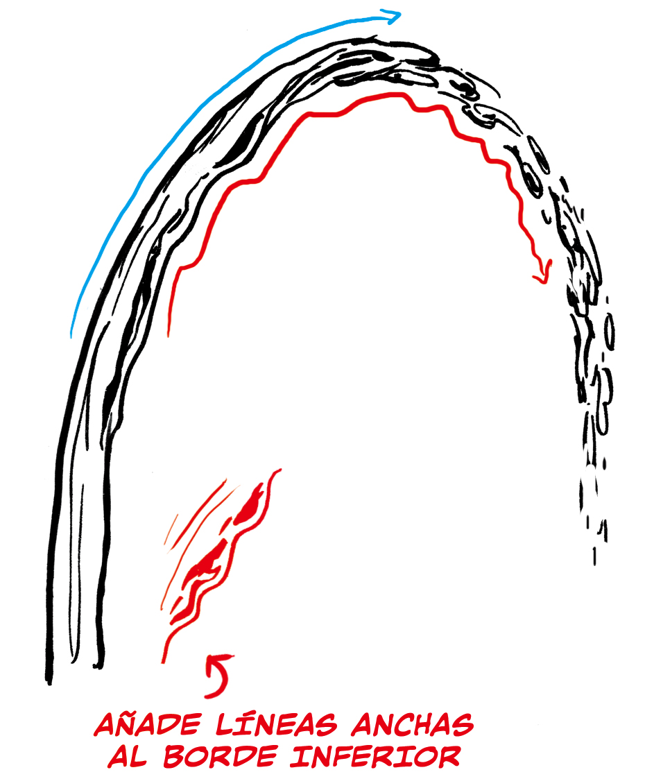 Juega con las sombras interiores de las olas para indicar su velocidad y profundidad.