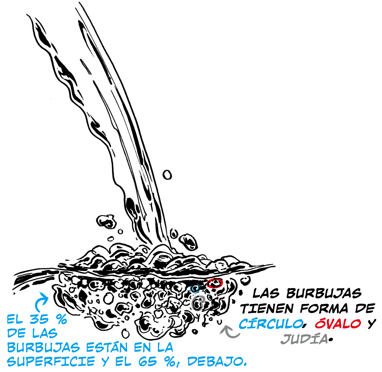 Aun si el agua vuelve a la calma, sigue habiendo ondas y pequeñas burbujas.