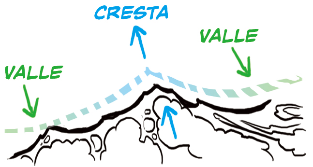 Las olas están formadas por una serie de crestas (parte superior) y valles (parte inferior).