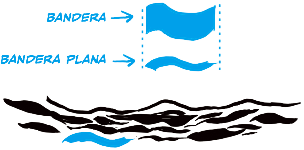 Si solo hay un ligero movimiento en el agua, este podría dividirse en una serie de banderas de forma irregular.