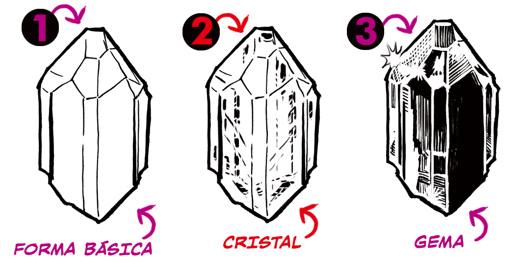Veamos cómo dibujar una gema más irregular y con un tallado más tosco: