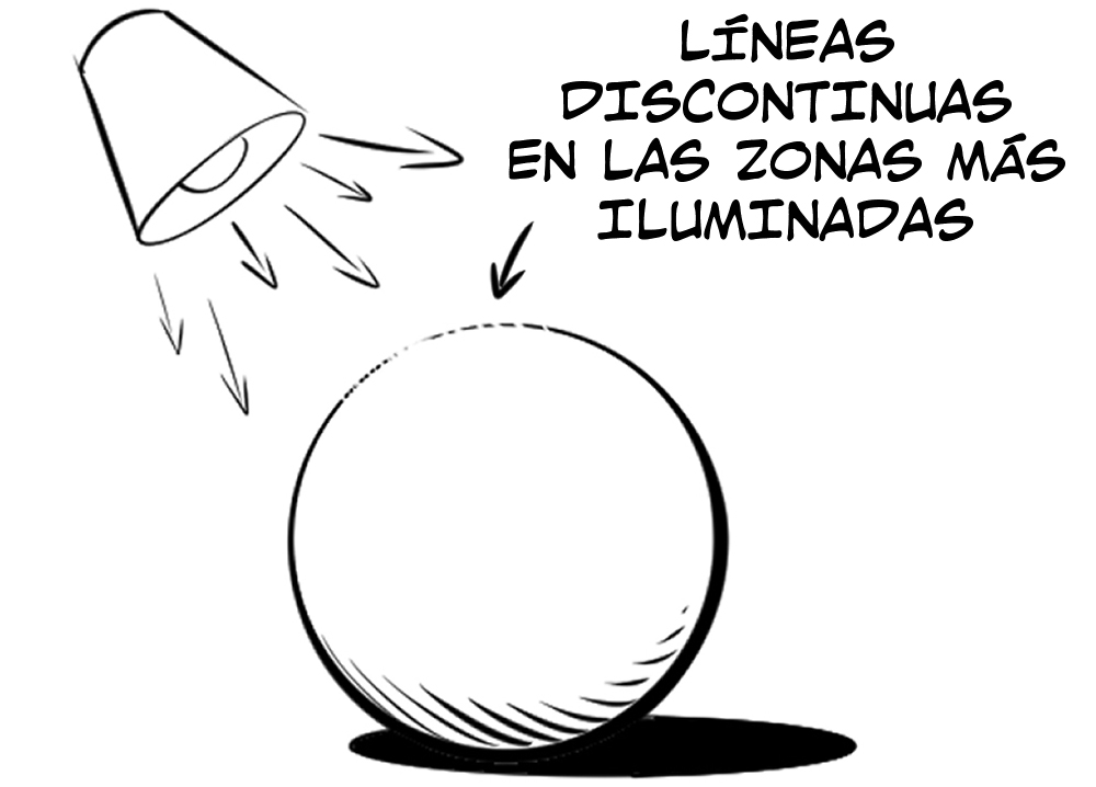 Puedes representar la luz impactando en una superficie si dibujas el contorno con líneas discontinuas.