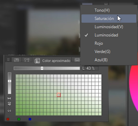 Adoro este selector de colores de CLIP STUDIO PAINT, ¡es como una lupa que te permite elegir el tono exacto de un color!