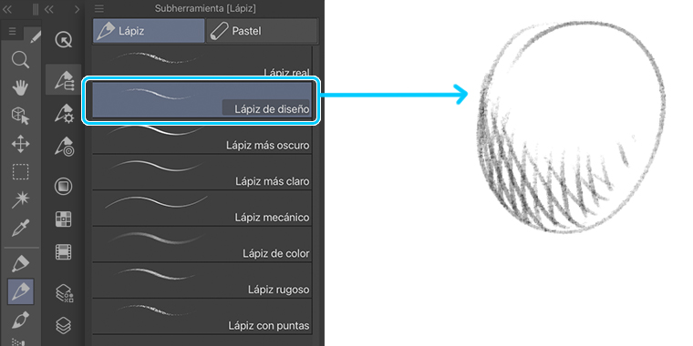 Ubicación: Herramienta Lápiz > subherramientas del Lápiz > Lápiz de diseño