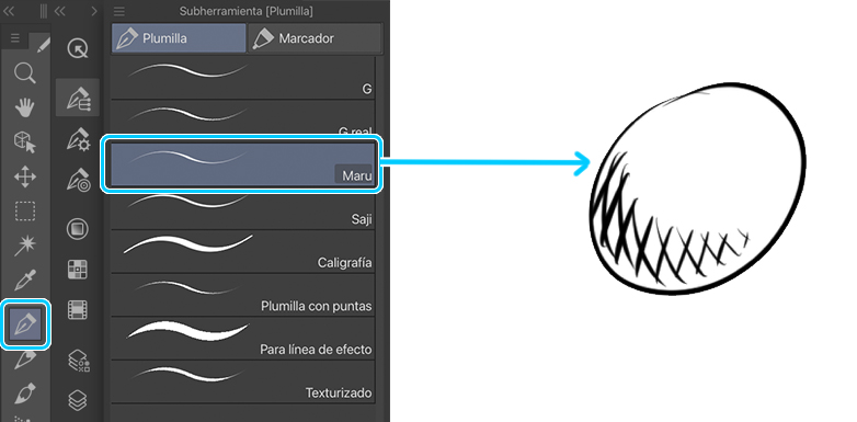 Ubicación: Herramienta Plumilla > subherramientas de la Plumilla > Maru