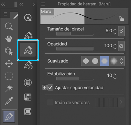 Puedes cambiar la configuración de los pinceles para adaptarla a tu estilo y tu forma de dibujar. Para ello, solo hay que modificar los ajustes del pincel desde la paleta de propiedades de la herramienta.