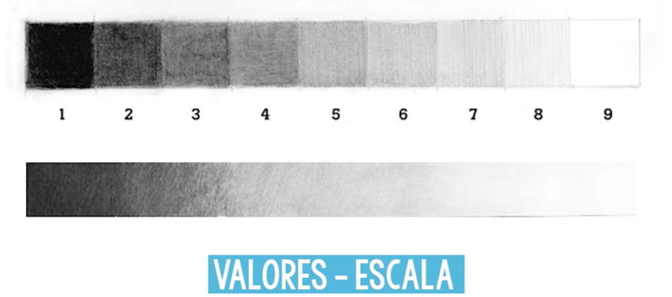 En el extremo derecho, tenemos el tono que equivaldría a la luz más clara, mientras que en el borde izquierdo tenemos el tono que representaría la sombra más oscura.