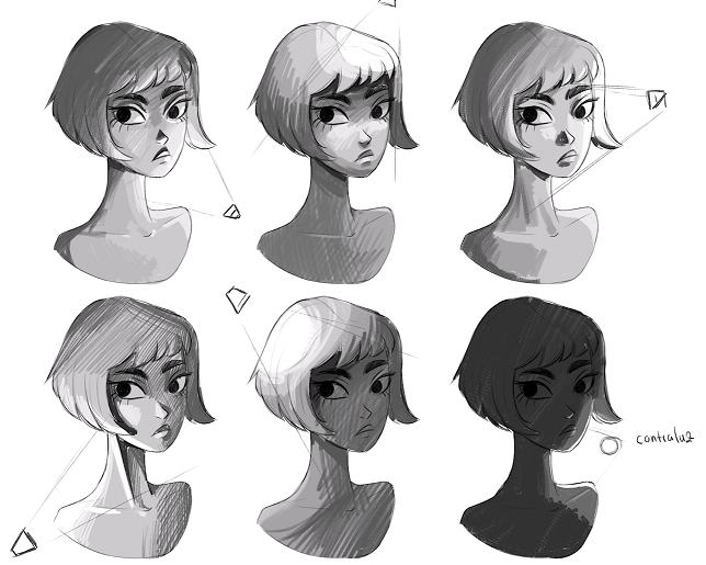 He visto artistas que utilizan los mismos tonos para sus luces y sombras, independiente de la distancia a la que se encuentren de la fuente de luz. Si recuerdas estos consejos, podrás evitarlo y colocar tus claroscuros de una forma mucho más inteligente, realista y volumétrica.