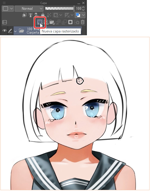 Pasemos al estilo semirrealista. Al igual que con el estilo manga, empiezo creando una nueva capa sobre el dibujo principal donde trazo el contorno del pelo.
