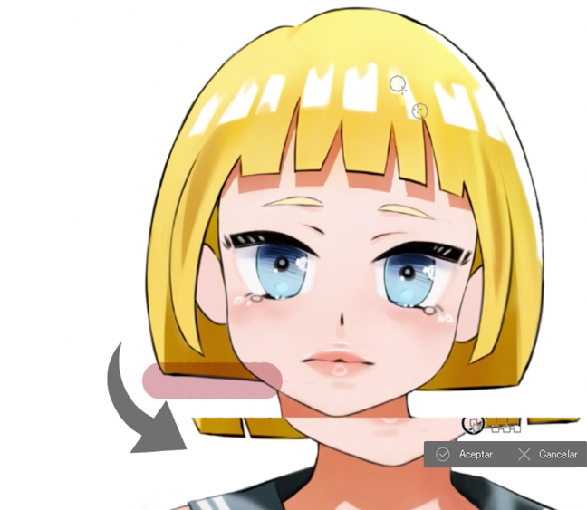 Añado los reflejos cuadrados típicos del manga y rebajo el volumen inferior del pelo para darle más ligereza.