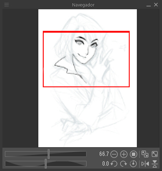 Por lo general, forzar la continuidad de una línea hace que nuestro trazo no se vea tan bien como podría, pues nuestra mano tiene cierto rango de alcance para hacer una línea fluida, más si trabajamos con medios digitales. * El panel de navegación: Cuando dibujo me encuentro incontables veces alejando, acercando y rotando el lienzo para trazar con más comodidad. Para líneas que abarcan mucho espacio, alejo; para aquellas que son muy cortas o que requieren más detalle y precisión, hago zoom tanto como quiera; y para dibujar líneas en ángulos que mi muñeca es incapaz de maniobrar, he de girar el lienzo.