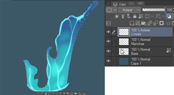 Pondremos esta capa en el modo de combinación Aclarar. No te preocupes aunque la pintura se salga de la forma, ya lo solucionaremos en el siguiente paso.