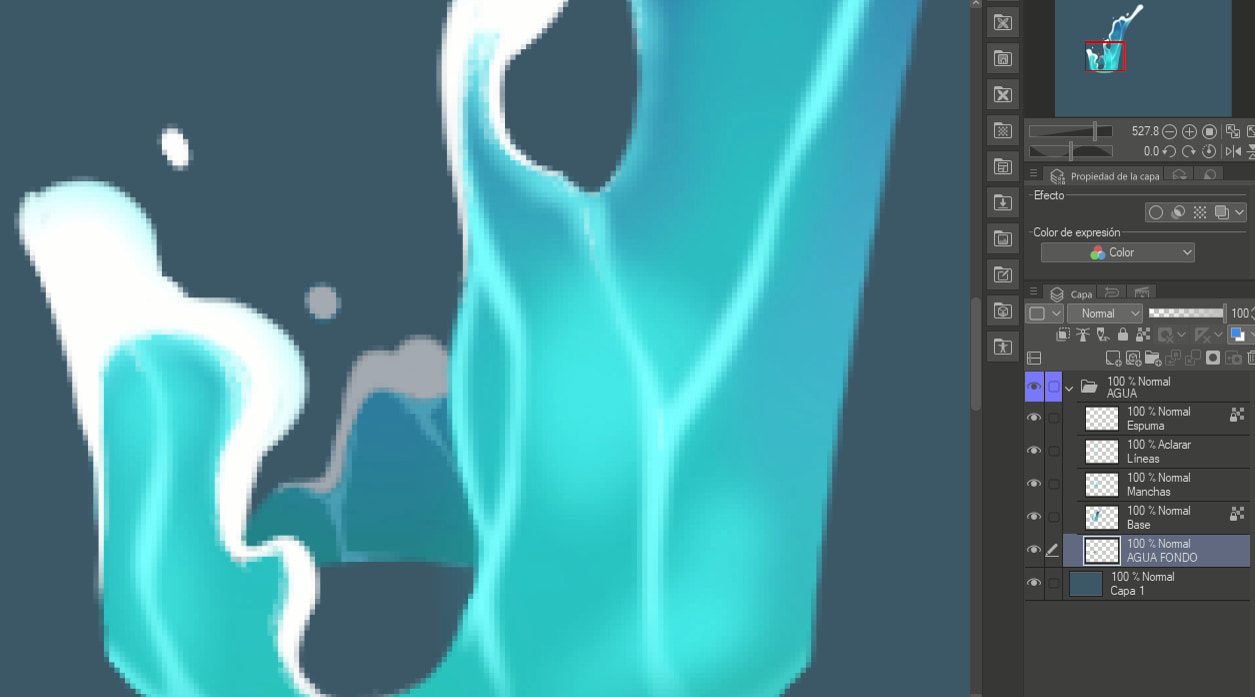 Ahora sí, comenzamos a representar el primer elemento, el agua.