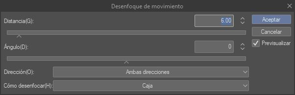 Aplicaremos los siguientes parámetros: Distancia entre 6 y 10, Ángulo 0, Dirección: Ambas direcciones y en Cómo desenfocar elegiremos Caja.