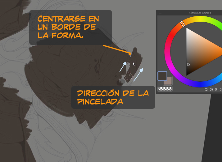 Así puedo concentrarme por completo en las sombras, ya que mis trazos no afectan a la capa del color plano.