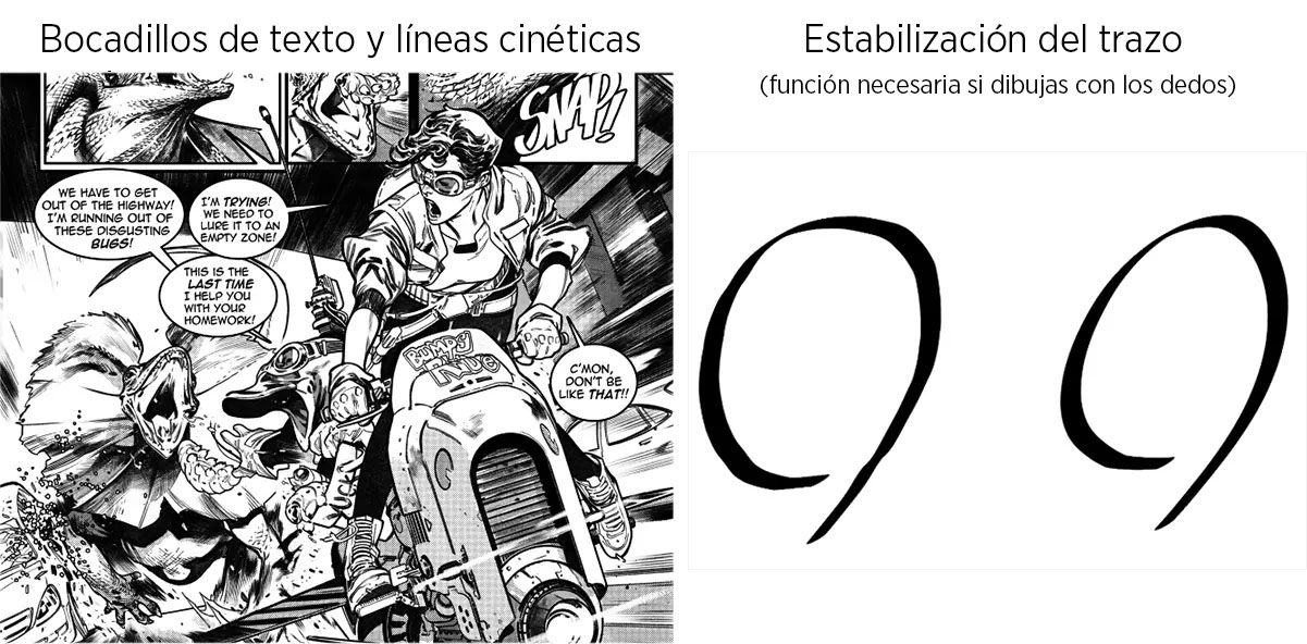 Ambas incluyen funciones para crear fácilmente viñetas, bocadillos y trazos fluidos, por lo que son ideales tanto para crear como para compartir cómics y webtoons en línea.