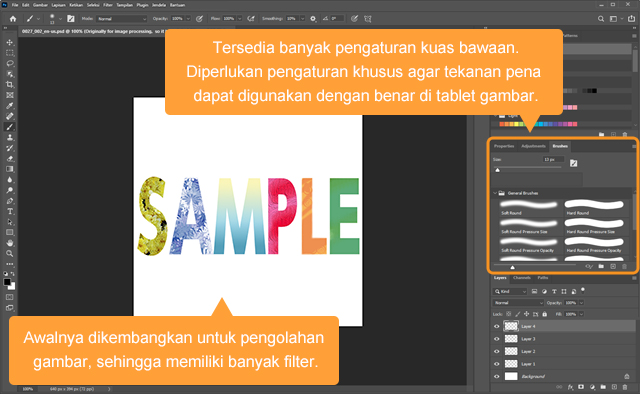 Meskipun Photoshop lebih dikenal sebagai software pengeditan foto, aplikasi ini juga dapat digunakan untuk menggambar dan sering dipakai di sekolah desain maupun studio profesional di seluruh dunia. Penyesuaian pada pengaturan dan kuas mungkin membutuhkan waktu adaptasi, namun Photoshop tetap menjadi pilihan kuat bagi mereka yang mencari program dengan fleksibilitas tinggi.
