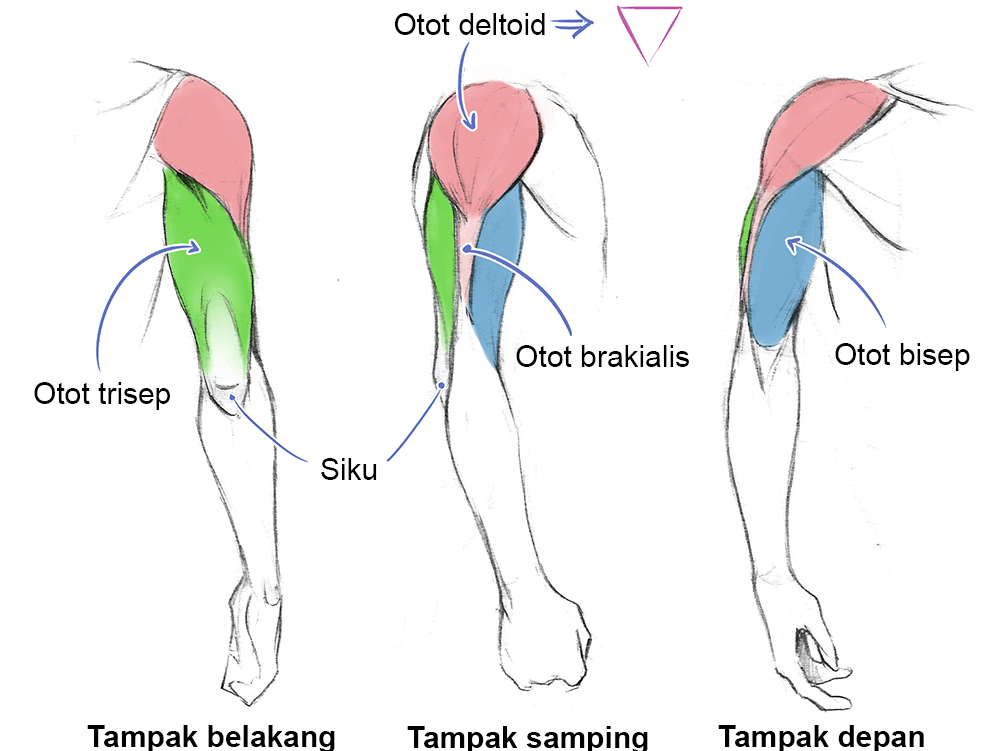 Otot-otot Tubuh Manusia Panduan otot yang informatif dan detail oleh seniman Eridey. Penjelasan tentang otot-otot utama pada torso, lengan, dan kaki dalam panduan yang mudah dipahami, lengkap dengan diagram berwarna yang menunjukkan bagaimana otot berubah tergantung pada sudut dan gerakan.