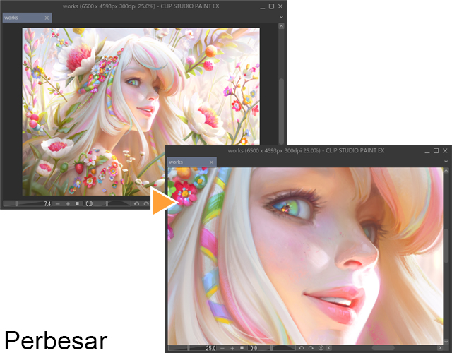 Gunakan pintasan berikut untuk memperbesar tampilan kanvas.